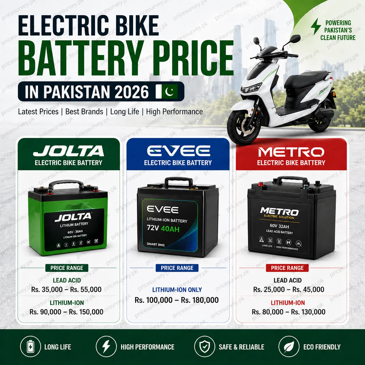 Electric bike batteries are the core of smart mobility in Pakistan. Whether you choose Jolta, Evee, or Metro, the right battery depends on your budget and usage.